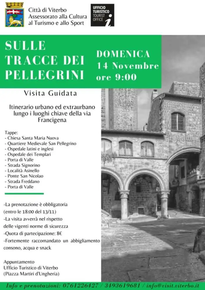 La visita guidata ripercorre, nel modo più fedele possibile, il cammino del pellegrino, una prima parte all’interno della città e una seconda nei dintorni, in direzione di Vetralla, prima tappa verso la Capitale.