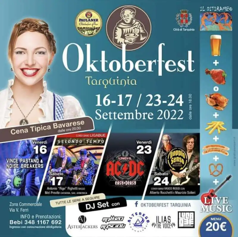 Torna a Tarquinia l’Oktoberfest, torna la festa più attesa a cavallo tra fine estate e inizio autunno, pronta a far rituffare la cittadina etrusca nell’atmosfera della sentitissima tradizione di Monaco di Baviera.