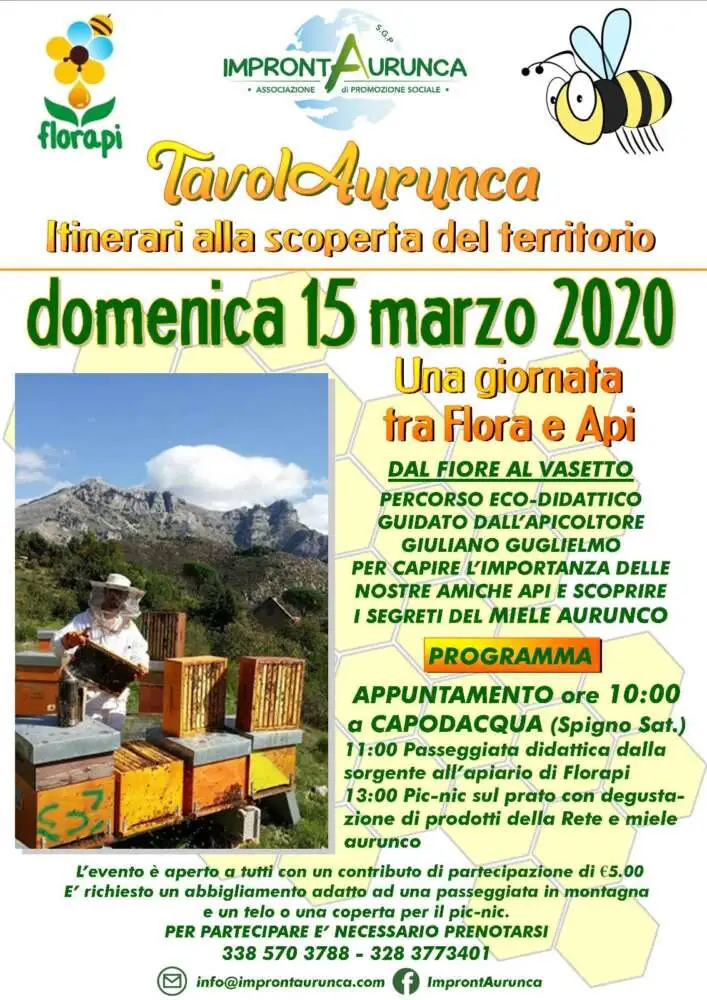 Successivamente, ci sarà un pic-nic con i prodotti della rete ImprontAurunca e, chiaramente, con il miele aurunco di Florapi.