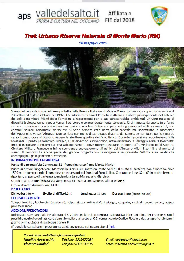 Punto di partenza: Via Gomenizza 81 – Roma (ingresso Parco Monte Mario)