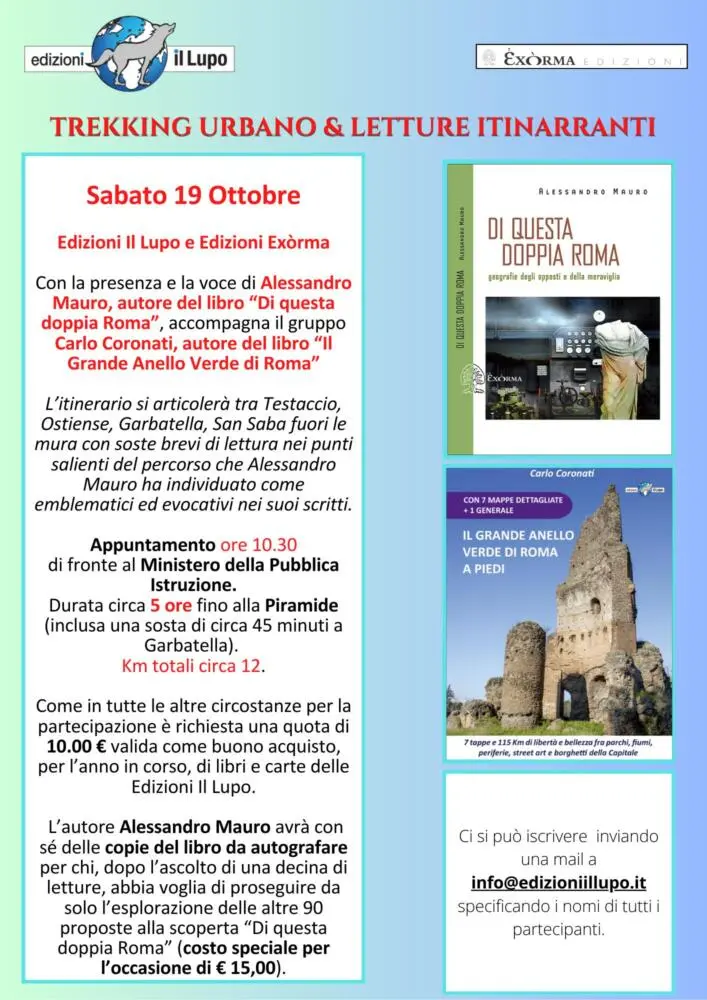 Le Edizioni Il Lupo e le edizioni Exòrma propongono per sabato 19 ottobre un percorso di letture itineranti con la presenza e la voce di Alessandro Mauro, autore del recente libro “Di questa doppia Roma” (Exòrma Edizioni).