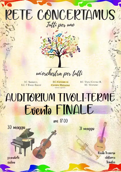 E’ arrivato il tanto attesto evento finale dei musicisti iscritti agli indirizzi Musicali delle scuole di Vicovaro, Tivoli, Subiaco, Castel Madama e Tivoli-Terme riunite nella Rete Concertamus.