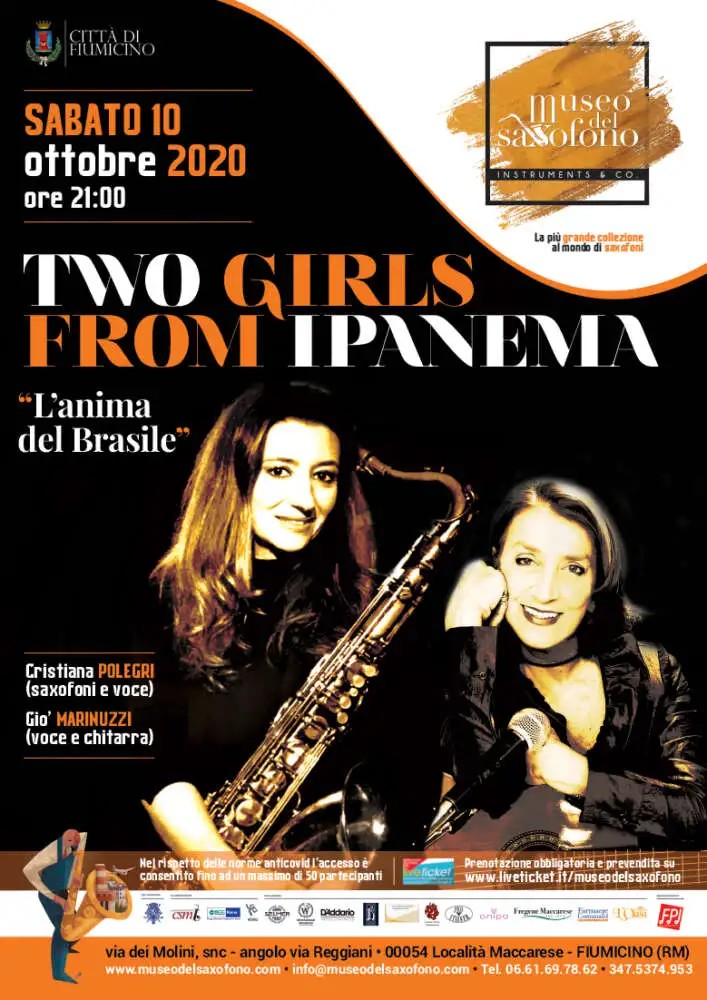 Sabato 10 ottobre al Museo del Saxofono è di scena Two Girls from Ipanema, un titolo suggestivo, un gioco di parole parafrasi del celebre brano di Jobim che è da preludio ad uno spettacolo ricco di suggestioni e di emozioni.
