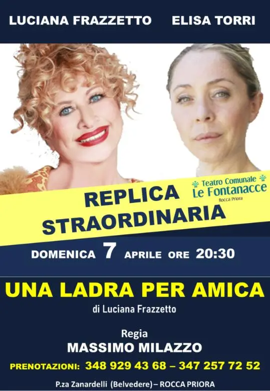Domenica 7 Aprile 2024 alle ore 17:30 con Replica Straordinaria alle ore 20.30, andrà in scena al Teatro Le Fontanacce una commedia brillante con due bravissime attrici.