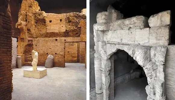 Oggi i resti più cospicui si conservano a circa 5 m di profondità dal piano stradale, all’interno di un’area archeologica restaurata di recente e sede di un nuovo allestimento museale che valorizza le poderose murature in opera laterizia del lato curvo e le altissime arcate in blocchi di travertino.