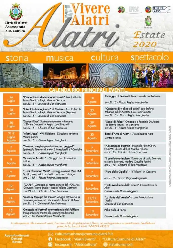 Teatro, musica, arte vanno avanti per tutto il periodo estivo del 2020 gli appuntamenti di “Vivere Alatri”, dal 26 luglio al 13 settembre