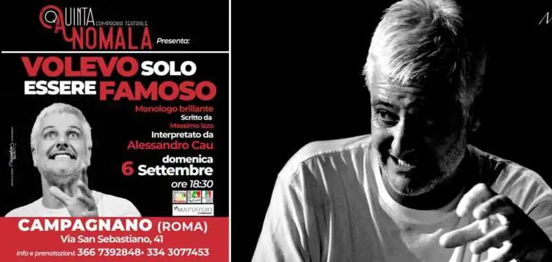 All’Ex Mattatoio di Campagnano di Roma arriva Alessandro Cau con un monologo adatto a tutti: “VOLEVO SOLO ESSERE FAMOSO”