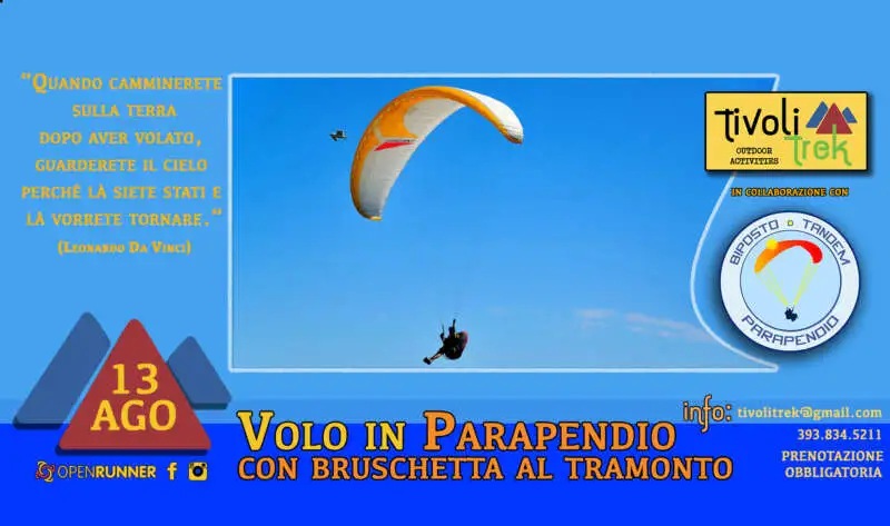 Tivoli Trek, in collaborazione con Biposto Tandem Parapendio, ti offre l’opportunità di realizzare questo sogno, in totale sicurezza e con la professionalità di un Pilota esperto e competente.
