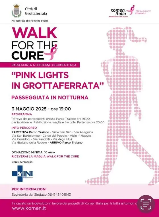 A Grottaferrata la seconda edizione della «Walk for the cure» si tinge di rosa con la fiaccolata notturna che l’Amministrazione Di Bernardo, Assessorato alle Politiche sociali, ha organizzato per sabato 3 maggio 2025.