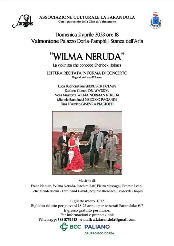 piccolo spettacolo teatral-musicale che nasce dal connubio di studi approfonditi sulla figura di Wilma Norman Néruda da parte della Pianista e didatta Vera Mazzotta e l’attore e regista Adriano D’Amico.