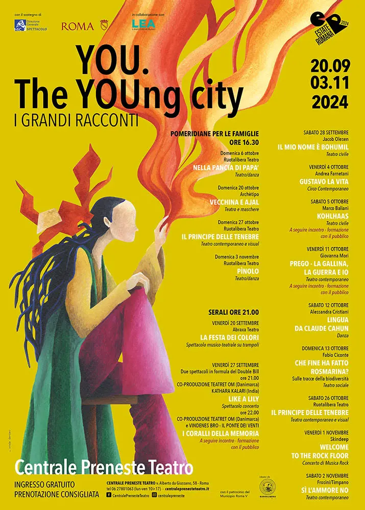 A Centrale Preneste Teatro a Roma (Via Alberto da Giussano, 58) prosegue la rassegna di spettacoli dal vivo, danza, musica e teatro YOU. The YOUng city – I GRANDI RACCONTI organizzata da Ruotalibera e con la direzione artistica di Tiziana Lucattini.