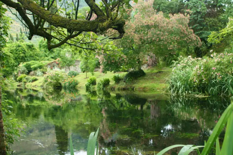 La giornata inizia in un luogo che è stato definito il giardino più romantico del mondo. Il Giardino di Ninfa è un capolavoro unico, un giardino botanico all’inglese che cresce tra le rovine di un’antica città medievale. Passeggiare qui significa immergersi in un paesaggio onirico, dove migliaia di piante da tutto il mondo si arrampicano su antiche mura e si specchiano nelle acque cristalline del fiume Ninfa.