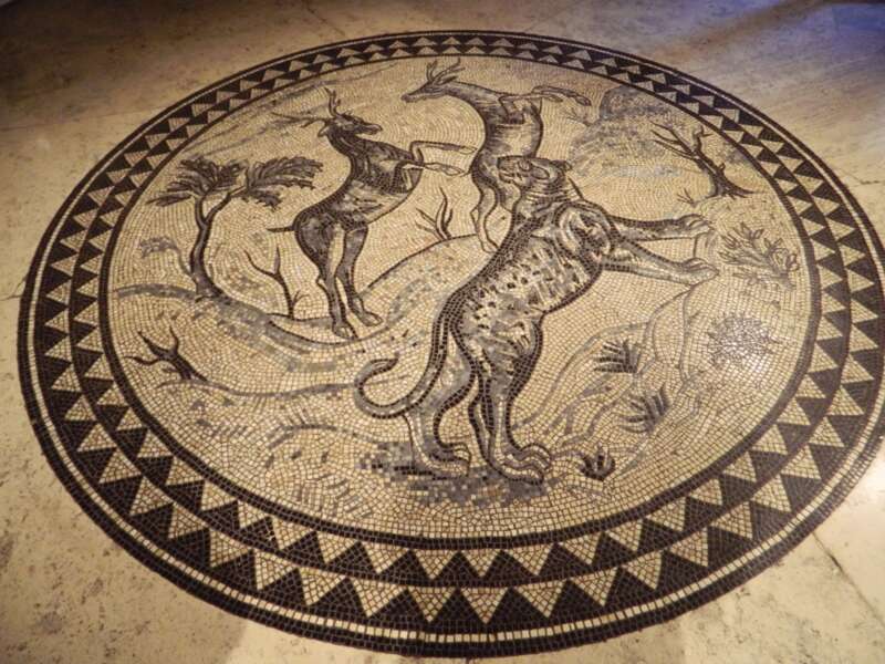 Il pavimento della torre occidentale conserva un mosaico, eseguito tra il 1940 e il 1943, che rappresenta due cervi e una tigre in agguato con vegetazione circostante. Sempre al centro di un’altra sala si trova un mosaico in bianco e nero che rappresenta un condottiero a cavallo con intorno soldati ed armi, anche questo dei primi anni quaranta del secolo scorso.
