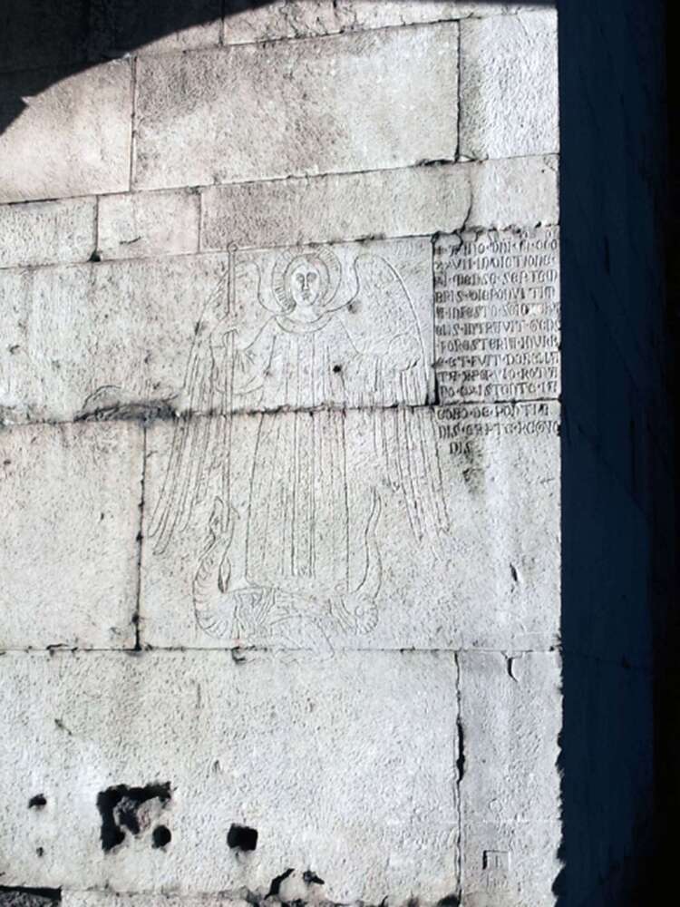 L’Arcangelo Michele fu a Roma, insieme con San Pietro e San Paolo, la figura più cara all’iconografia cristiana dei primi secoli e medievale. Ne è testimonianza il graffito, inciso nella parte interna destra di Porta San Sebastiano che raffigura l’Arcangelo Michele che uccide il drago; accanto c’è anche un’iscrizione in latino che ne spiega la motivazione. L’iscrizione recita: