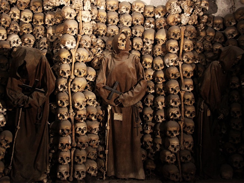 La Cripta è composta da una serie di piccole cappelle sotterranee le cui pareti e volte sono interamente decorate con i resti di circa 4.000 frati cappuccini, raccolti tra il 1528 e il 1870 dal vecchio cimitero dell’ordine. Lungi dall’essere una celebrazione della morte, la disposizione delle ossa è un potente “memento mori” – un richiamo alla transitorietà della vita terrena e alla promessa della risurrezione.
