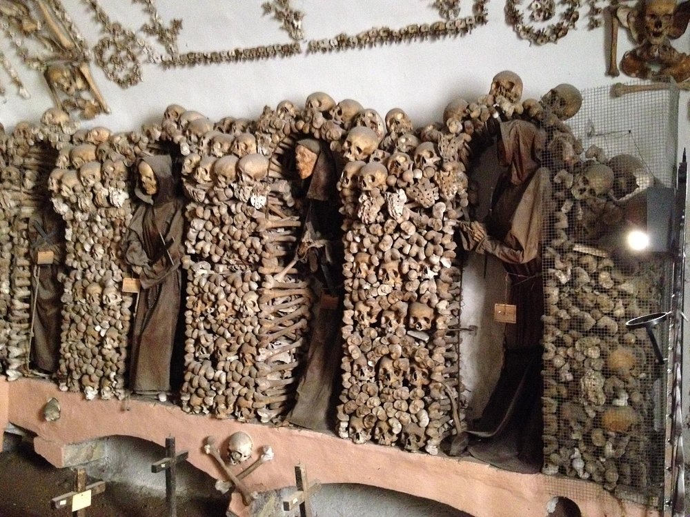 Ogni cappella ha un nome specifico, come la Cripta degli Scheletri, la Cripta dei Bacini o la Cripta delle Tibie e dei Femori, a seconda delle ossa utilizzate per la decorazione. Vertebre, teschi, femori e scapole sono stati artisticamente composti per creare lampadari, rosoni, ghirlande e nicchie che ospitano scheletri interi vestiti con il saio francescano.