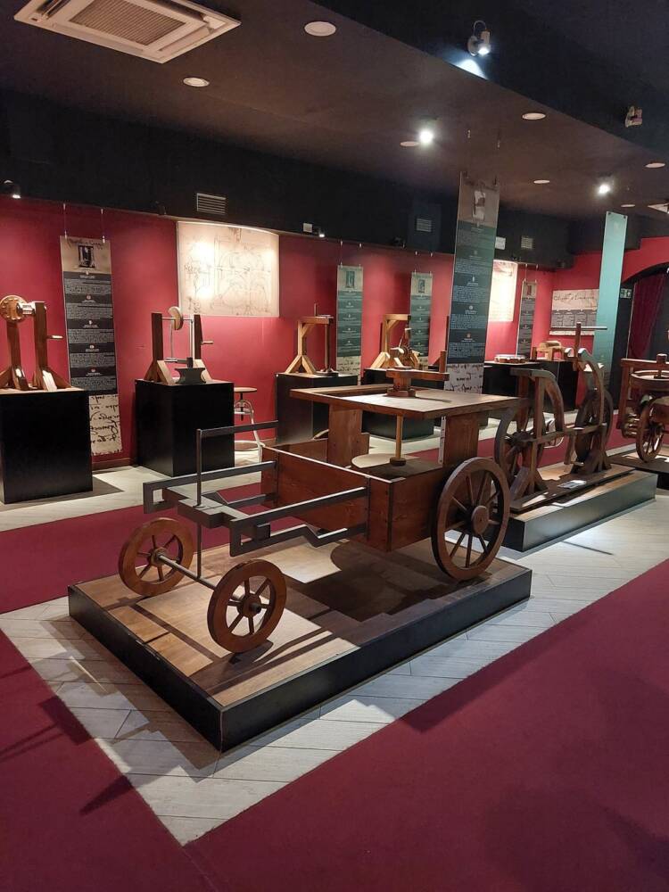 Ciò che distingue questo museo da altri dedicati a Leonardo è la sua straordinaria collezione di oltre 50 invenzioni certificate, tutte ricostruite fedelmente a partire dagli schizzi e dagli appunti originali del genio toscano. Qui non si è semplici spettatori, ma protagonisti di un’esperienza tattile e coinvolgente che permette di interagire direttamente con i macchinari progettati dalla mente visionaria di Leonardo.