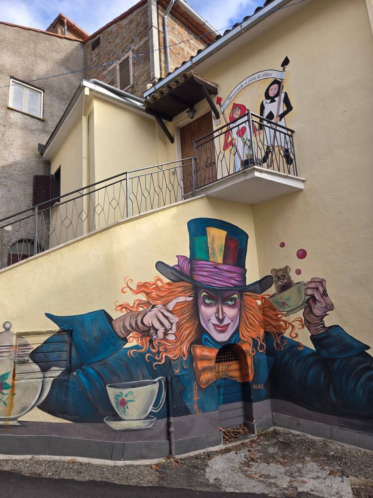 - Alice nel Paese delle Meraviglie: È il murale “capostipite”, situato nella piazza principale. Rappresenta Alice e il Bianconiglio che ti danno il benvenuto nel borgo.