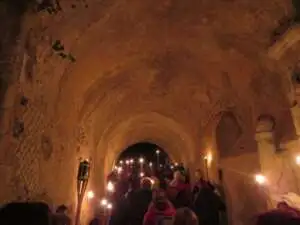 Partendo quindi dal Santuario della Montagna Spaccata, il numeroso serpentone di “tedofori” si è avviato su per i tornanti attraverso il bosco di lecci, per poi ridiscendere agevolmente alla Batteria Trabacco, dove ci aspettavano proprio i nostri amici astrofili con i loro potenti telescopi, capaci di farci ammirare le meraviglie del cosmo che ci circonda.